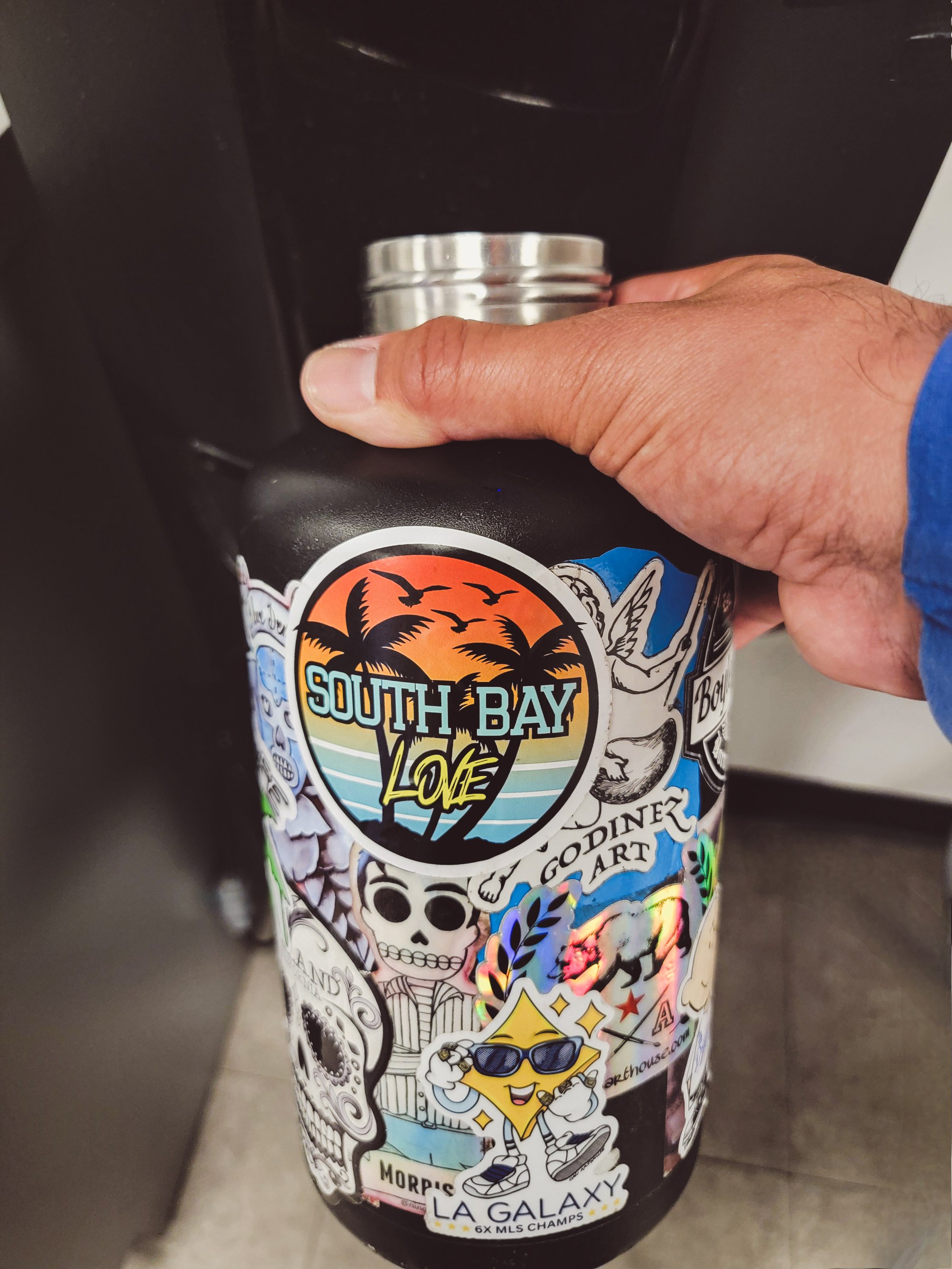 "South Bay Cali Love". This ispirational sticker design captures the beautiful golden hour meets ocean vibe.